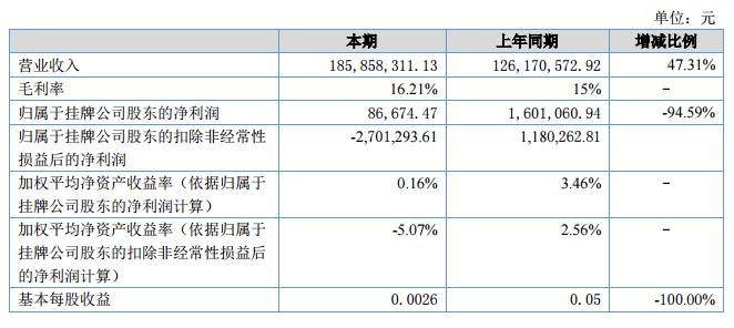 挖貝網(wǎng)09月3日,匯偉股份(證券代碼:871947)近日公布的2018年半年報(bào)顯示,截至2018年6月30日,企業(yè)實(shí)現(xiàn)營收1.86億元;歸屬于掛牌公司股東的凈利潤為86,674元。