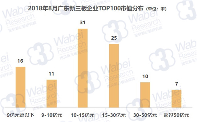 TOP100上榜門檻為7.93億元,其中有7家企業(yè)市值超過(guò)50億元,而市值在9億元及以下、9-10億元、10-15億元、15-30億元、30-50億元的企業(yè)分別有16家、11家、31家、25家、10家。
