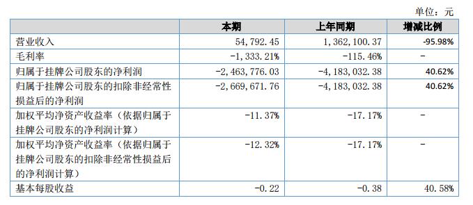 本報告期內(nèi),營業(yè)收入為54,792.45元,較上年同期銷售的1,362,100.37元,大幅下降,主要原因是行業(yè)競爭加劇,且公司銷售、業(yè)務(wù)合同從項目立項到研發(fā)再到最終銷售給客戶的周期比較長,所以回款主要集中于2018年下半年。?