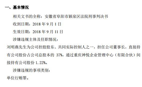 相關(guān)公告顯示,2004年至2013年,劉明燕在安徽省所投資燃?xì)忭椖康膯挝恍匈V。依據(jù)相關(guān)法律,判罰刑期1年(判決執(zhí)行以前先行羈押的,羈押一日折抵刑期 一日,即從 2017 年 9 月 2 日到 2018 年 9 月 1 日),并判處罰金人民幣 20 萬元。