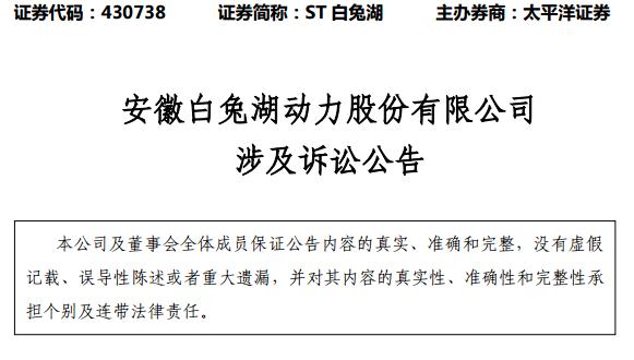 8月22日,國元網(wǎng)金將白兔湖告上法庭,要求判令安徽白兔湖動力股份有限公司立即歸還借款本金人民幣3000萬元和服務費本金126萬元,以及各種利息和罰息。
