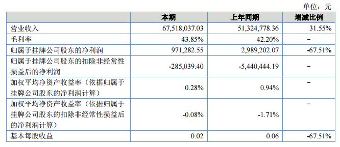 報(bào)告期內(nèi),公司實(shí)現(xiàn)營(yíng)業(yè)收入6,751.80萬(wàn)元,較上年同期增長(zhǎng)31.55%。歸屬于母公司股東的凈利潤(rùn)97.13萬(wàn)元,較上年同期減少201.79萬(wàn)元。?