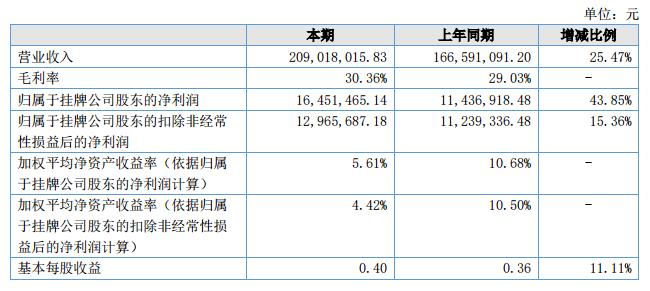 報(bào)告期內(nèi),公司經(jīng)營保持良性快速增長,實(shí)現(xiàn)營業(yè)收入209,018,015.83元,較上年同期增長25.47%;凈利潤實(shí)現(xiàn)16,589,934.23元,比上年同期增長45.06%。?