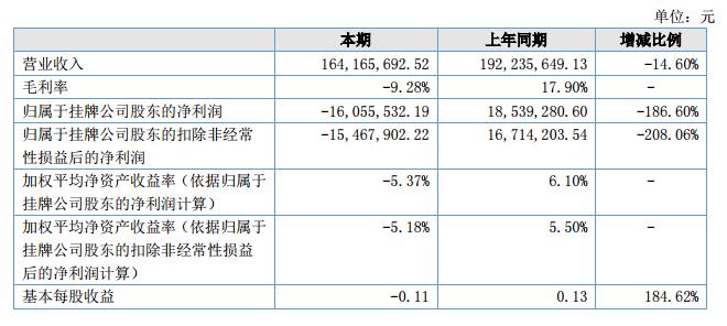 報(bào)告期內(nèi)公司實(shí)現(xiàn)營業(yè)收入16,416.57萬元,同比減少14.60%;營業(yè)利潤-3,394.82萬元,同比減少292.42%;凈利潤-1482.37萬元,同比減少176.42%;經(jīng)營活動(dòng)產(chǎn)生的現(xiàn)金凈流量-40.76萬元,同比減少100.91%。