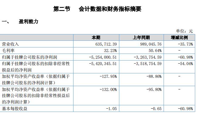 2018 上半年歸屬于掛牌公司股東的凈資產(chǎn)為 1,479,302.44 元,較期初減少 78.03%,主要原因系公司上半年凈利潤為-5,254,000.51 元,導(dǎo)致未分配利潤相較期初大幅減少所致。