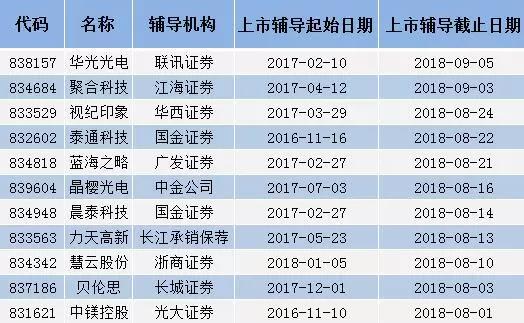 (8月份以來終止接受輔導(dǎo)的掛牌公司)