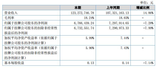 報告期內(nèi)公司實(shí)現(xiàn)營業(yè)收入12327.27萬元,較2017年的10732.12萬元增長14.86%。工程項(xiàng)目毛利率為18.24%,與上年同期基本持平。報告期實(shí)現(xiàn)凈利潤676.64萬元,較上年同期729.79萬元下降7.28%。?
