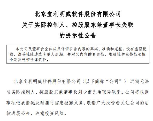 劉少甫作為公司實際控制人、控股股東兼董事長近期處于失聯(lián)狀態(tài),可能出現(xiàn)不行使股東權(quán)利的情形,公司管理層可能出現(xiàn)重大變化的風(fēng)險。
