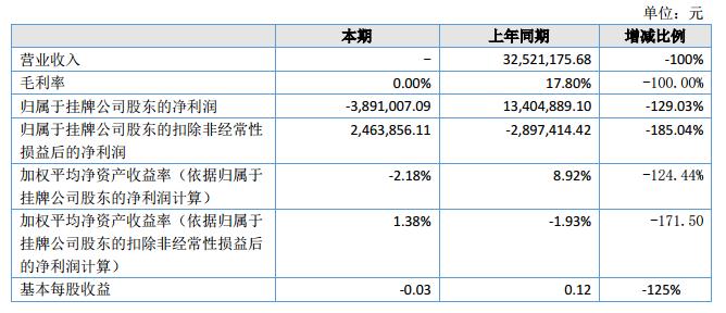 報告期內(nèi),公司因發(fā)展戰(zhàn)略需要,新的業(yè)務(wù)處于過渡階段,導(dǎo)致報告期內(nèi)新的業(yè)務(wù)尚未實(shí)現(xiàn)收入,實(shí)現(xiàn)營業(yè)收入0萬元,利潤總額-388.43萬元,歸屬于掛牌公司股東的凈利潤-389.10萬元,凈利潤較上年同期減少129.03%。減少的原因由于投資損失的增加,公司持有江蘇神山風(fēng)電設(shè)備制造有限公司21.37%的股權(quán),給公司造成了-245.29萬元虧損。?