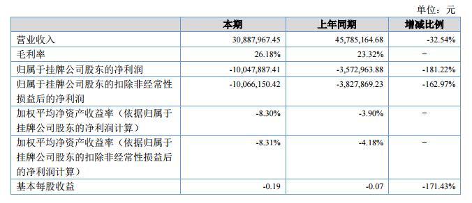 報告期內,公司按照年初制定的經(jīng)營計劃開展各項業(yè)務。2018年上半年,公司營業(yè)收入3,088.80萬元,較去年同期下降32.54%。報告期,歸屬于掛牌公司股東的凈利潤-1,004.79萬元,較去年同期下降181.22%。?