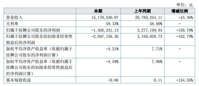 為公司業(yè)務(wù)長(zhǎng)遠(yuǎn)發(fā)展,本期公司致力于標(biāo)準(zhǔn)化產(chǎn)品的研發(fā)、黨建云的搭建及全國(guó)市場(chǎng)的前期開(kāi)拓,因此本期營(yíng)業(yè)收入、營(yíng)業(yè)成本同比均下降較大。其中,營(yíng)業(yè)收入實(shí)現(xiàn)1,517.05萬(wàn)元,比上年同期的2,678.53萬(wàn)元減少了43.36%;營(yíng)業(yè)成本617.04萬(wàn)元,比上年同期的1,125.06萬(wàn)元減少了45.15%。由于營(yíng)業(yè)收入和營(yíng)業(yè)成本下降,但費(fèi)用支出基本不變,導(dǎo)致本期公司出現(xiàn)虧損:凈利潤(rùn)為-192.63萬(wàn)元,比上年同期327.72萬(wàn)元減少了158.78%。?