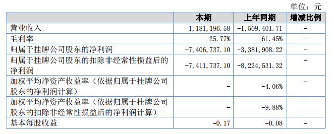 報(bào)告期內(nèi),公司實(shí)現(xiàn)營(yíng)業(yè)收入118.12萬(wàn)元,較上年同期增長(zhǎng)了269.06萬(wàn)元,主要是自2017年債務(wù)違約訴訟影響,公司在積極努力的開(kāi)展業(yè)務(wù),逐步恢復(fù)正常經(jīng)營(yíng)。營(yíng)業(yè)成本87.68萬(wàn)元,產(chǎn)品毛利率25.77%,公司目前力爭(zhēng)消化庫(kù)存產(chǎn)品,采取了折價(jià)銷(xiāo)售的方式,回籠部分資金;凈利潤(rùn)-740.67萬(wàn)元,較上年同期下降了119.01%。?
