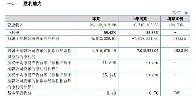 財(cái)務(wù)狀況截至 2018 年 6 月 30 日,公司資產(chǎn)總額為 25,264,893.13 元,較 2017 年末增加 11,619,959.48 元,增長(zhǎng)了 85.16%,主要系貨幣資金、應(yīng)收賬款、預(yù)付賬款的增加。截至 2018 年 6 月 30 日,歸屬于掛牌公司凈資產(chǎn)為 16,882,061.73 元,較 2017 年末增長(zhǎng)了 52.51%,主要系未分配利潤(rùn)的增加。