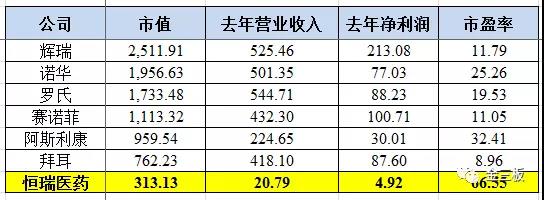 以國內(nèi)醫(yī)藥股老大恒瑞為例,與海外大藥企們相比,去年凈利潤只有輝瑞的2%,但市值卻有輝瑞的12%,估值是否高了呢?