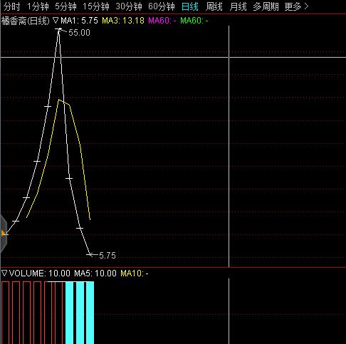 根據(jù)炒股軟件顯示,橘香齋股價(jià)在9月4日、5日、6日大跌3天,每天的跌幅分別為59%、48%和50%。股價(jià)從3月26日的55元/股跌到9月7日5.75元/股,總市值從大約20億元跌到2億元左右;成交量分別為2.23萬、1.15萬和5750元,總計(jì)大概4萬元。
