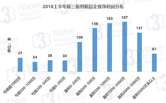 今年上半年,披露凈利潤的926家創(chuàng)新層企業(yè)中,凈利潤為負的企業(yè)有158家,占比17.1%;凈利潤不足500萬的有404家,占比43.6%。