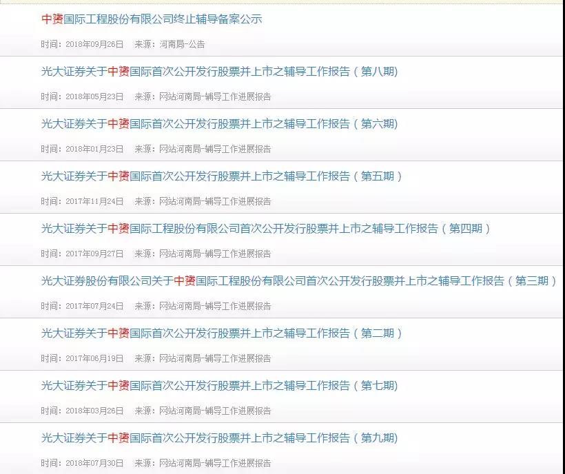 在輔導(dǎo)期間,河南證監(jiān)局官網(wǎng)先后公布了光大證券對中赟國際的9期輔導(dǎo)工作報(bào)告。其中第九期輔導(dǎo)時(shí)間為今年5月14日-7月16日。