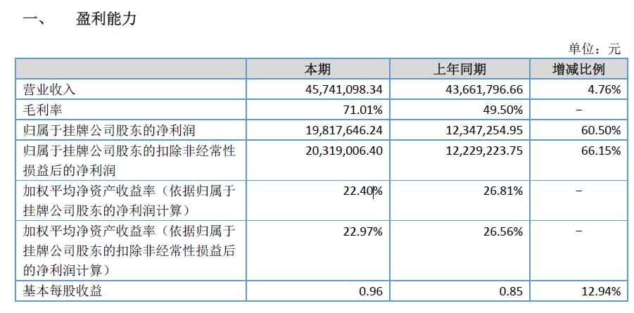 挖貝網(wǎng) 10月6日,恒友股份(證券代碼:872928)近日公布的2018年半年報顯示,截至2018年6月30日,企業(yè)實現(xiàn)營收4574.11萬元;歸屬于掛牌公司股東的凈利潤為1982萬元。