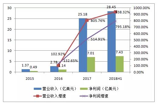 更可怕的是,僅2018年上半年,比特大陸營(yíng)業(yè)收入就達(dá)到了28.45億美元,同比增長(zhǎng)938.32%,近乎10倍,高于2017年全年的收入,凈利潤(rùn)也達(dá)到了7.43億美元,同比增長(zhǎng)795.18%,真是當(dāng)之無(wú)愧的吸金王啊。