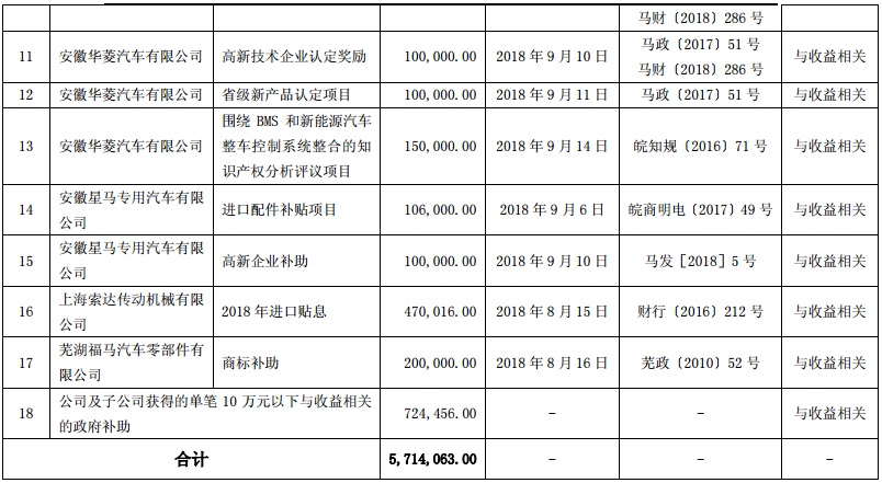 華菱星馬獲取政府補助明細(挖貝網wabei.cn配圖)