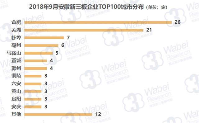 截至2018年9月30日,新三板共有10946家掛牌公司,安徽有341家新三板企業(yè),占比3.1%;其中179家企業(yè)有市值,占比52.5%。