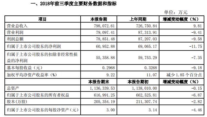 快報(bào)顯示,2018年前三季度實(shí)現(xiàn)營(yíng)業(yè)收入79.81億元,同比增長(zhǎng)9.81%,其中實(shí)現(xiàn)出口營(yíng)業(yè)收入45.02億元,同比增長(zhǎng)20.45%;實(shí)現(xiàn)歸屬于母公司的凈利潤(rùn)6.10億元,同比下降11.75%;實(shí)現(xiàn)扣非后歸屬母公司凈利潤(rùn)5.54億元,同比下降7.35%。