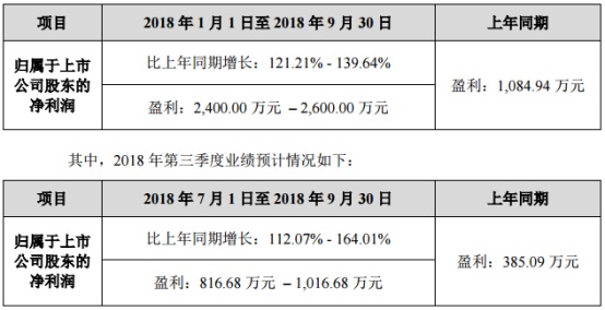 同益股份前三季度業(yè)績(jī)預(yù)告顯示,前三季度,公司預(yù)計(jì)實(shí)現(xiàn)凈利潤(rùn)2400萬元至2600萬元,較上年同期增長(zhǎng)121%至140%;第三季度,公司預(yù)計(jì)實(shí)現(xiàn)盈利817萬元至1017萬元,同比增112%至164%。