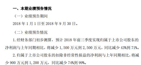 華儀電氣稱,經(jīng)財(cái)務(wù)部門初步測算,預(yù)計(jì)2018年前三季度實(shí)現(xiàn)歸屬于上市公司股東的凈利潤與上年同期相比,將減少1,500萬元到2,500萬元,同比減少43%到71%。歸屬于上市公司股東的扣除非經(jīng)常性損益的凈利潤與上年同期相比,將減少900萬元到1200萬元,同比減少74%到99%。