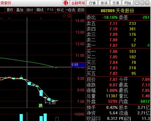 進入10月份以來,天奇股份股價大幅下跌,3個交易日跌幅接近16%。10月10日公司收盤價8.29元/股,16日收盤僅為7.00元/股,跌幅約為16%。10月11日,公司股價盤中跌停,最終以高于跌停價1分錢收盤(7.47元/股)。