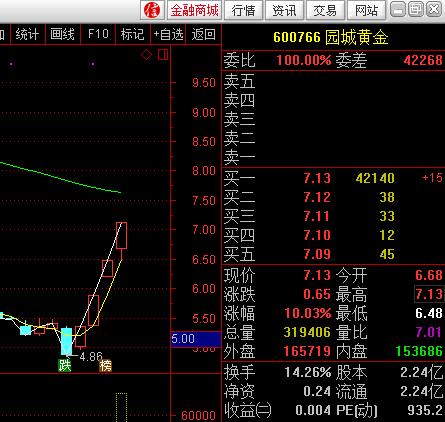 誰也沒有想到,接下來4個(gè)交易日,園城黃金戲劇性迎來連續(xù)4個(gè)漲停。截止到發(fā)稿時(shí),股價(jià)為7.13元,4天漲幅累計(jì)約47%。