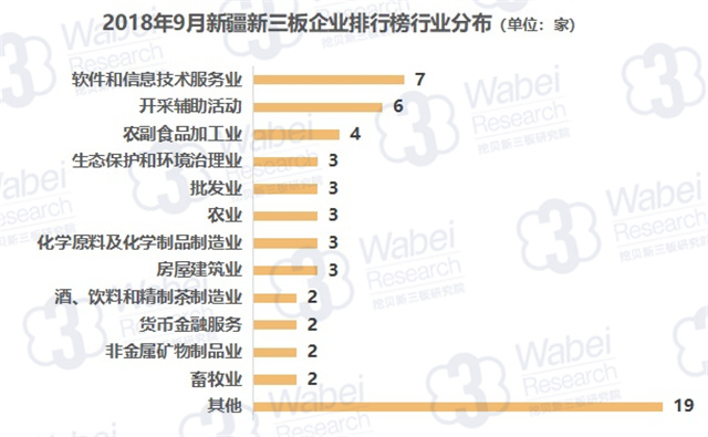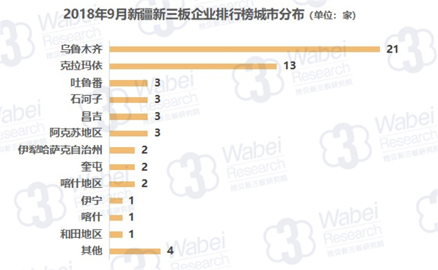 截止到2018年9月30日,新三板共有10946家掛牌公司,新疆有89家新三板企業(yè),占比0.8%;其中59家企業(yè)有市值,占比66.3%。