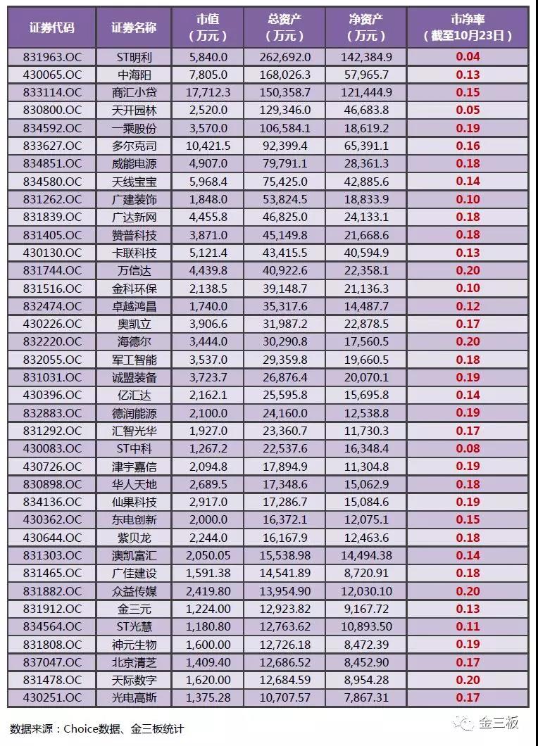 如果放眼整個新三板,10914家掛牌公司,破凈的股票數(shù)量達到1407支。也就是說,幾乎每8家掛牌公司中就有1家公司破凈。