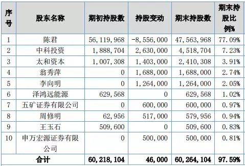 接下來(lái)的兩個(gè)多月,陳君進(jìn)行了多次減持。半年報(bào)顯示,控股股東2017年上半年減持了855.3萬(wàn)股,截至2017年6月30日,陳君持股比例降至77.1%,其妻持股比例為0.83%。