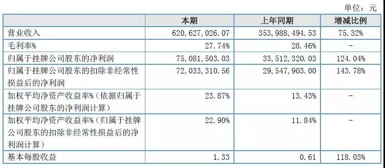 2017年,春暉智控實(shí)現(xiàn)營(yíng)業(yè)收入6.2億元,同比增長(zhǎng)75%;凈利潤(rùn)7508萬元,同比大漲124%。