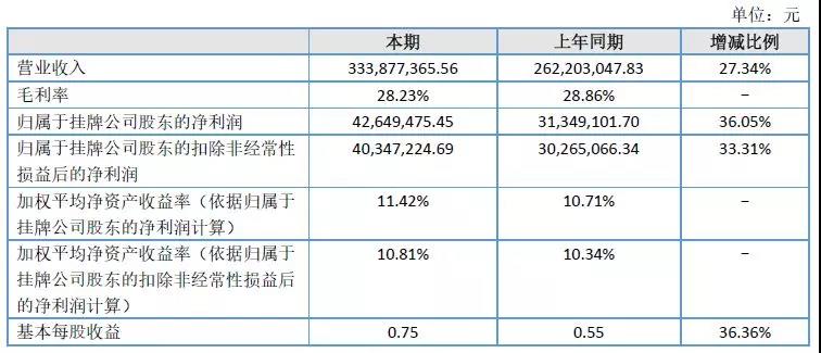 春暉智控2018年半年報(bào)顯示,上半年公司實(shí)現(xiàn)營(yíng)業(yè)收入3.34億元,同比增長(zhǎng)27.3%;凈利潤(rùn)4265萬元,同比增長(zhǎng)36%。公司表示,業(yè)績(jī)?cè)鲩L(zhǎng)主要是市場(chǎng)需求增加,導(dǎo)致營(yíng)業(yè)收入增長(zhǎng)等因素影響。
