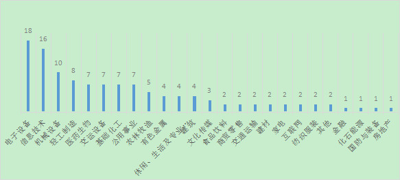 在今年已發(fā)生的并購(gòu)案例中,來(lái)自傳統(tǒng)行業(yè)的買(mǎi)方比較活躍。細(xì)分看,今年128起并購(gòu)案例中涉及24個(gè)一級(jí)行業(yè)。其中,電子設(shè)備行業(yè)居于首位,并購(gòu)案例達(dá)18起,其次是信息技術(shù)、機(jī)械設(shè)備行業(yè)并購(gòu)案例分別達(dá)到16例、10例。