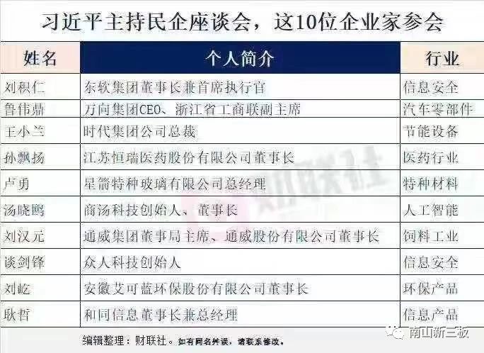 座談會(huì)上,劉積仁、魯偉鼎、王小蘭、孫飄揚(yáng)、盧勇、湯曉鷗、劉漢元、談劍鋒、劉屹、耿哲等10位企業(yè)家代表先后發(fā)言,就新形勢(shì)下支持民營(yíng)企業(yè)發(fā)展提出意見(jiàn)和建議。第三位王小蘭是時(shí)代集團(tuán)總裁、北京時(shí)代(430003)的副董事長(zhǎng),第十位耿哲是山東和同信息(871991)的董事長(zhǎng)。十個(gè)發(fā)言人中就有兩個(gè)新三板企業(yè)家,前者是最老的掛牌企業(yè),后者是新掛牌不久的企業(yè),實(shí)際上在體量上都很小。他倆發(fā)言的具體內(nèi)容外界無(wú)從知曉,但我相信肯定至少會(huì)涉及新三板和融資相關(guān)表述,特別是和同信息掛牌一年多來(lái),已經(jīng)先后發(fā)布了4份股權(quán)質(zhì)押融資公告了。