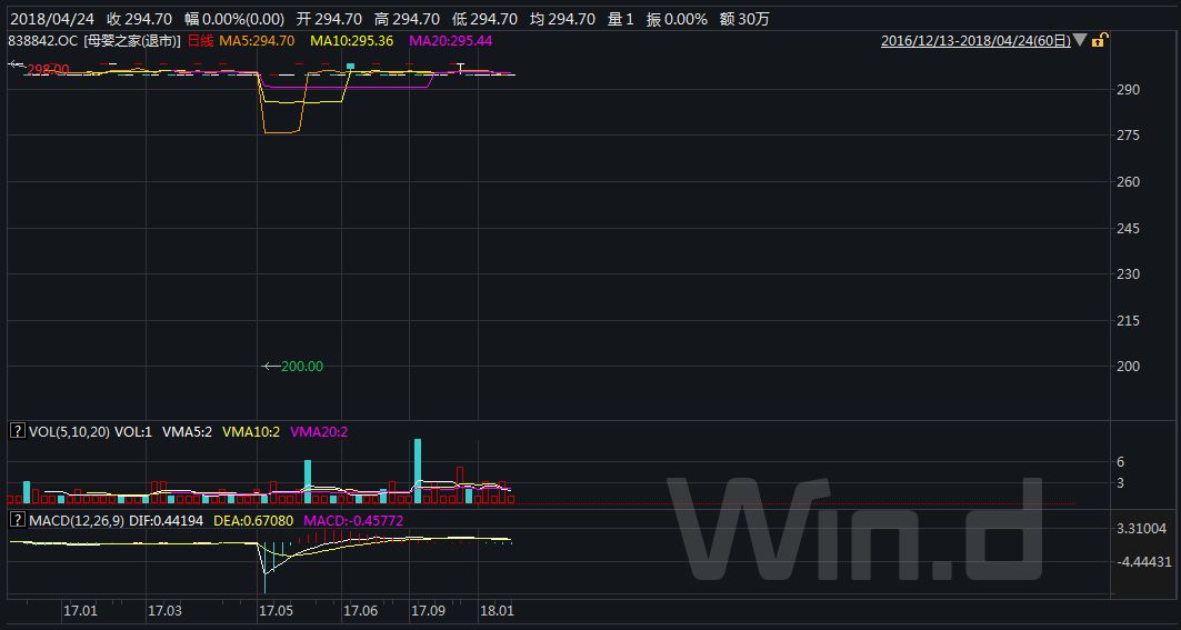 自掛牌后,母嬰之家股價就在298元上下做窄幅震動,摘牌前,公司收盤價294.7元/股,高居新三板所有掛牌公司榜首,是一位市值高達(dá)18億的“另類股王”。
