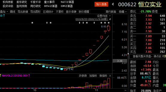2018年11月9日,恒立實業(yè)盤中再次摸板,最終沒有封住,止步11連板。但是恒立實業(yè)創(chuàng)下的11連板記錄,卻在當前指數(shù)較低時格外“扎眼”。從10月19日至11月8日,恒立實業(yè)累計漲幅高達216%,市值從10億元飆升至33.59億元。