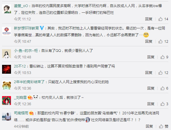 有網(wǎng)友表示,自己曾經(jīng)通過人人網(wǎng)認識了不少校友,至今雖然不再上人人網(wǎng),但與校友還有聯(lián)系;也有網(wǎng)友表示,自己甚至連賬號也不記得,但依然懷念以前干凈的界面以及獨有的方形臉表情包。