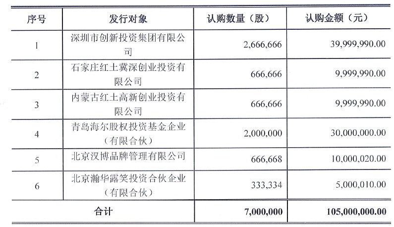 這次認購多牛傳媒的投資者共有6名,包括深圳市創(chuàng)新投資集團有限公司、石家莊紅土冀深創(chuàng)業(yè)投資有限公司、青島海爾股權(quán)投資基金企業(yè)(有限合伙)等知名機構(gòu)投資者。